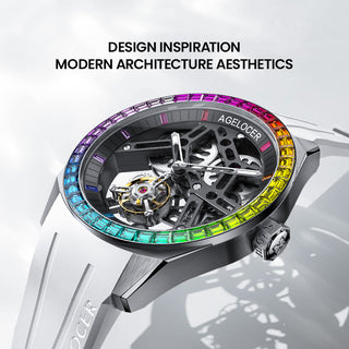 AGELOCER Original Manual Winding Flying Tourbillon Watch Men Skeleton Wathces-Rainbow Bezel