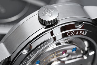 AGELOCER uses the same sapphire glass material as high-luxury watches on both the watch crystal and the case back. The 5N (99.999%) high-purity sapphire glass, after anti-glare treatment, makes the watch more transparent and flawless.
