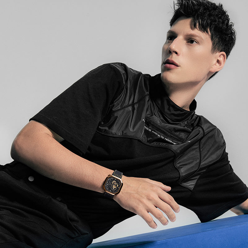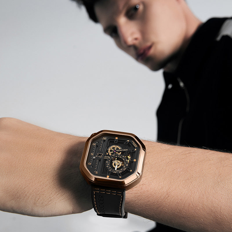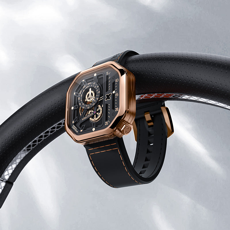 AGELOCER take modern architecture as inspiration for our watch design and create a floating castle between our wrists. Remove the traditional dial to allow the wearer to clearly see the light and shadow produced by the hollowed-out skeleton of the movement, expressing an unprecedented architectural design aesthetics.