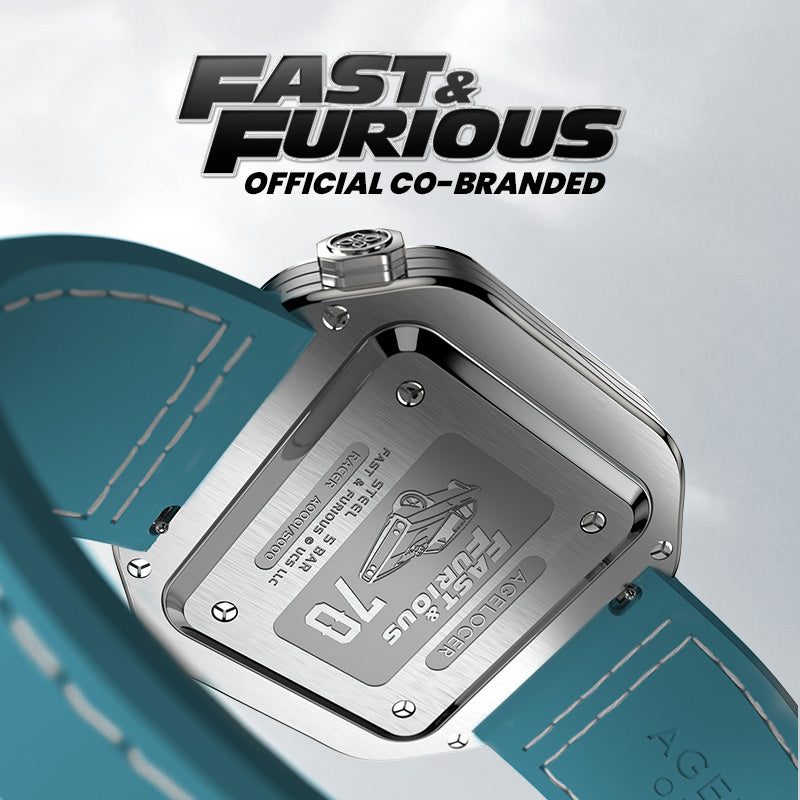 AGELOCER and Fast & Furious jointly create a racing watch. The "X" logo of Fast & Furious is hollowed out, and the "Fast & Furious" movie logo is placed on the dial. The designer tells the story of racing with details.