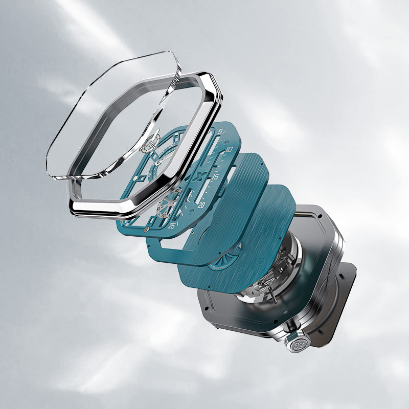 In the ultra-thin 2.4mm three-dimensional dial space, 4 layers of mechanical hollow structures and parts are installed, and each layer has a different visual experience.