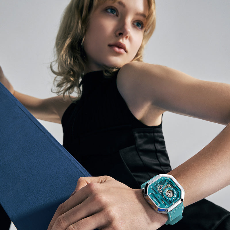 AGELOCER take modern architecture as inspiration for our watch design and create a floating castle between our wrists. Remove the traditional dial to allow the wearer to clearly see the light and shadow produced by the hollowed-out skeleton of the movement, expressing an unprecedented architectural design aesthetics.