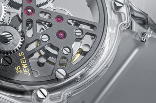 The ruby bearings in the movement mainly play a role in reducing friction. Compared with metal bearings, it can greatly reduce friction and make power transmission more efficient. Even after long-term use, ruby bearings can still maintain their shape and performance, reducing the probability of movement failures caused by bearing damage.