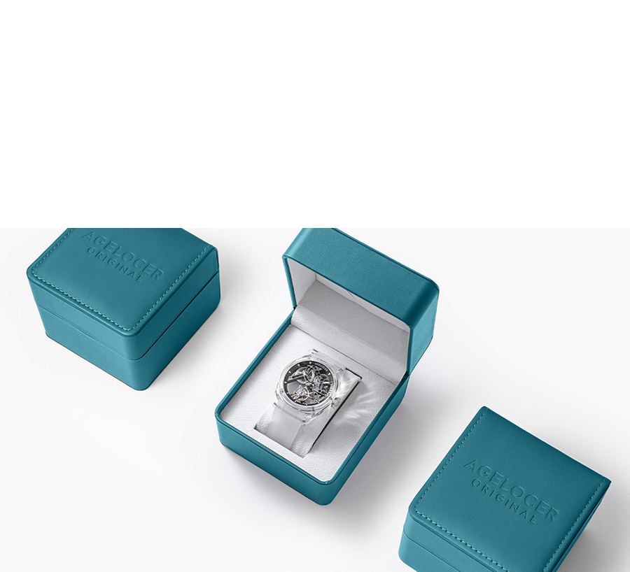 AGELOCER uses the same sapphire glass material as high-luxury watches on both the watch crystal and the case back. The 5N (99.999%) high-purity sapphire glass, after anti-glare treatment, makes the watch more transparent and flawless.