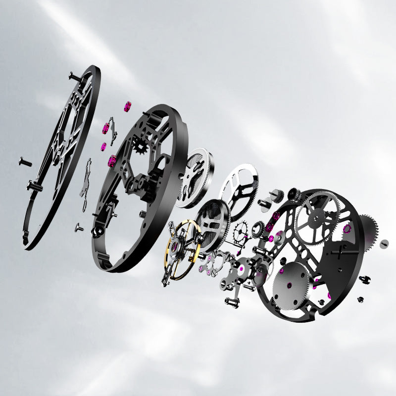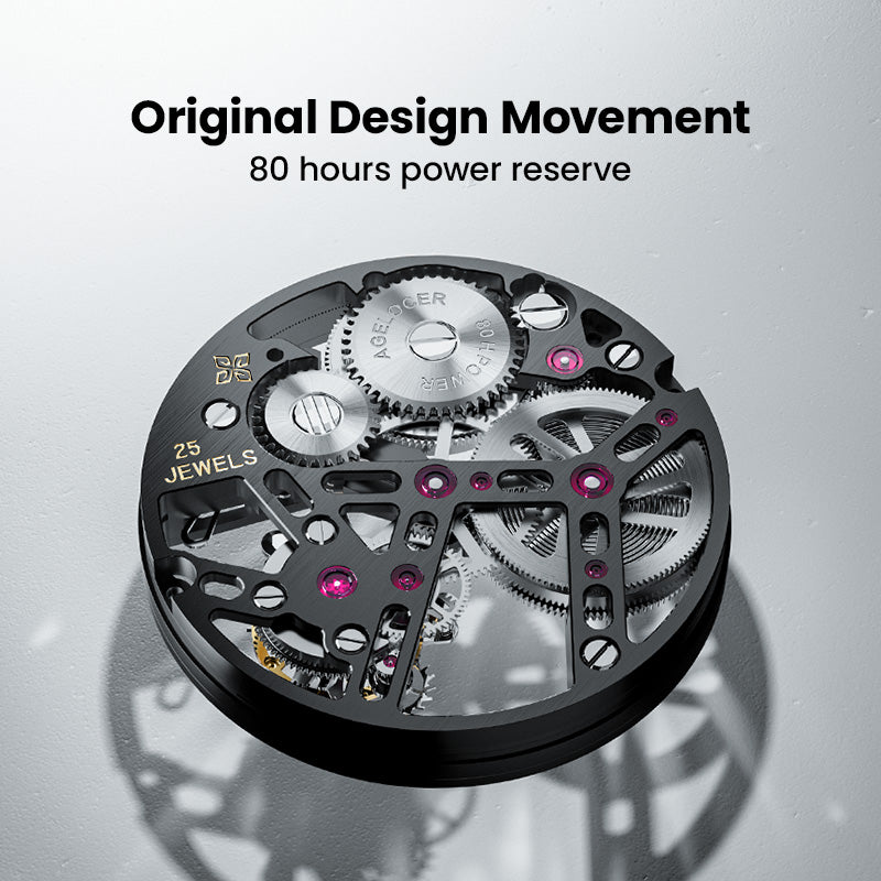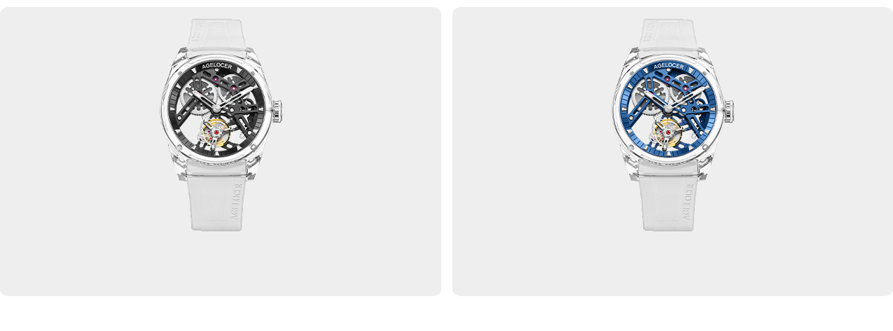AGELOCER take modern architecture as inspiration for our watch design and create a floating castle between our wrists. Remove the traditional dial to allow the wearer to clearly see the light and shadow produced by the hollowed-out skeleton of the movement, expressing an unprecedented architectural design aesthetics.