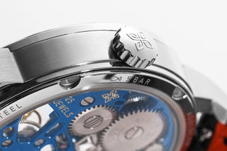 AGELOCER uses the same sapphire glass material as high-luxury watches on both the watch crystal and the case back. The 5N (99.999%) high-purity sapphire glass, after anti-glare treatment, makes the watch more transparent and flawless.
