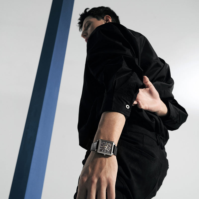 The CODEX hollow series reserve the retro square design. With the transparent sapphire glass, the hollow design allows people to clearly see the precise mechanical operation inside the watch: the rhythm of the escapement and the meshing of gears move slowly in the square movement. With the mechanical aesthetics and square case, CODEX presents new vitality in the science fiction and fashion.